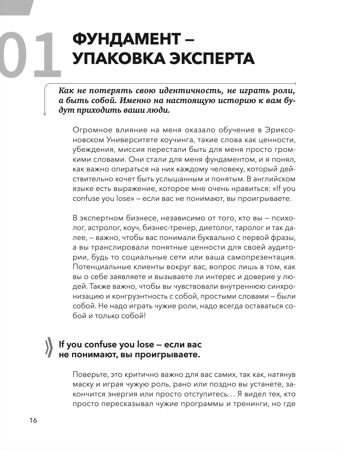 Структура книги очень удобная: шаг за шагом она проводит читателя от осознания своей уникальности к созданию программы, которая помогает монетизировать знания. Практические советы, вдохновляющие примеры и чёткие рекомендации — всё это делает книгу настоящим руководством для тех, кто хочет вырасти профессионально и финансово.